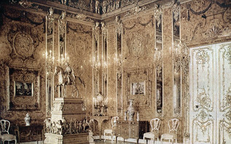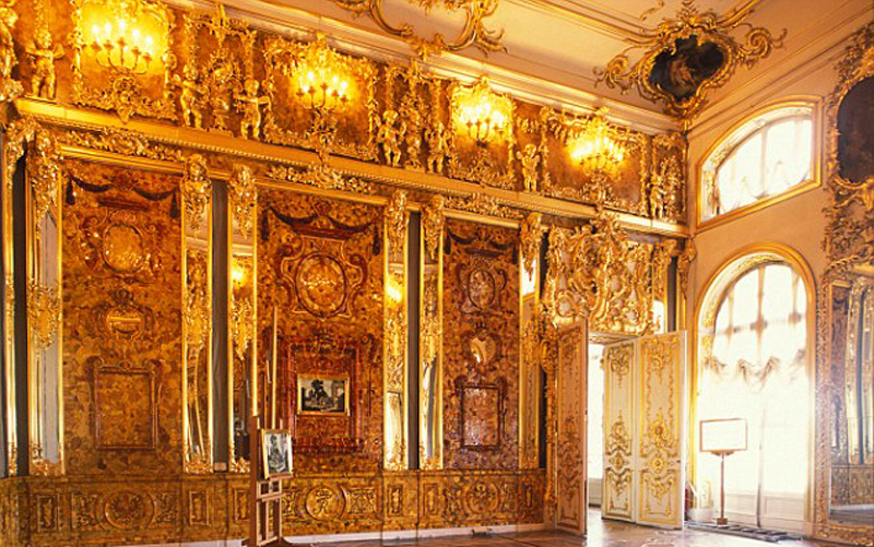 據悉,所謂的琥珀屋最初據說只是一個琥珀櫥柜,但最終被擴大為琥珀屋,共用掉450公斤琥珀,直到1770年才完工。納粹于1941年10月份攻陷位于圣彼得堡附近的凱瑟琳宮,并將琥珀屋拆除帶走,最終通過鐵路將琥珀屋運回當時東普魯士的科尼斯堡城堡(Koenigsberg Castle)安放??墒窃?945年1月份,這里遭到空襲和激烈的地面攻擊,琥珀屋從此下落不明。
