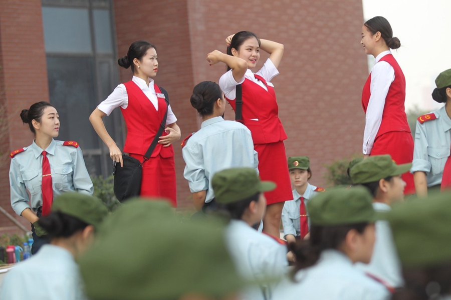 2015年9月17日,鄭州航院的“準(zhǔn)空姐”們正在軍訓(xùn)。