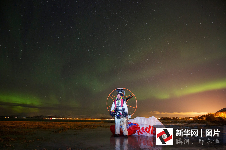 滑翔傘運(yùn)動(dòng)員Horacio Llorens在挪威終于完成了一生的夙愿“與極光跳舞”,畫面非常震撼。圖片來源:視覺中國