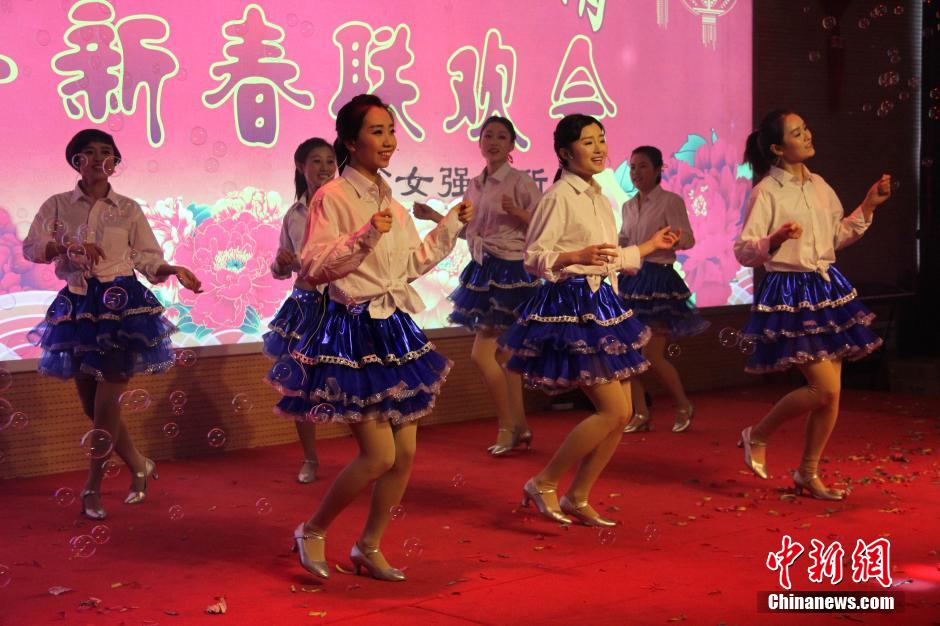 22日,適逢元宵佳節(jié),一場由民警和戒毒學(xué)員共同演繹的聯(lián)歡會在陜西省女強(qiáng)制隔離戒毒所舉行,通過歌舞、相聲、二人轉(zhuǎn)、小品等表演形式,鼓勵戒毒人員在新的一年,繼續(xù)增強(qiáng)戒毒意愿和決心,早日戒除毒癮回歸社會。圖為民警表演歌伴舞。 張一辰 攝