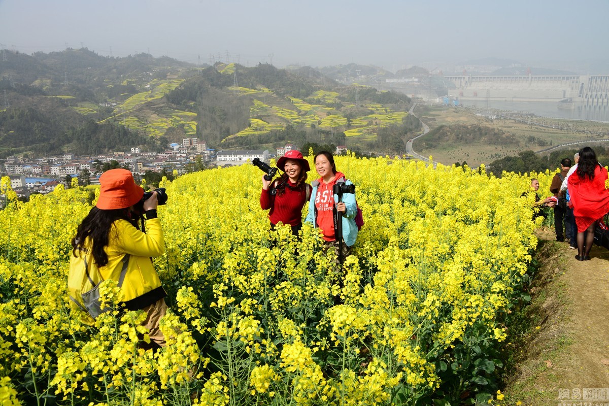 2016年3月6日,湖北宜昌,隨著春季氣溫的回升,湖北宜昌三峽壩區(qū)高家溪油菜花絢麗綻放,把三峽大壩映襯得分外壯觀美麗,吸引了眾多攝影發(fā)燒友和游人前來(lái)踏青采風(fēng)游覽。當(dāng)天一位練瑜伽的大媽陶醉于壩前花海,秀起了瑜伽,一時(shí)吸引了攝影發(fā)燒友和游人瘋狂拍攝。圖為大媽花海中秀瑜伽。