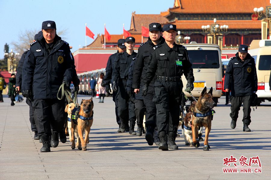 訓(xùn)練有素的警犬巡邏在廣場(chǎng)上 段晉哲/圖