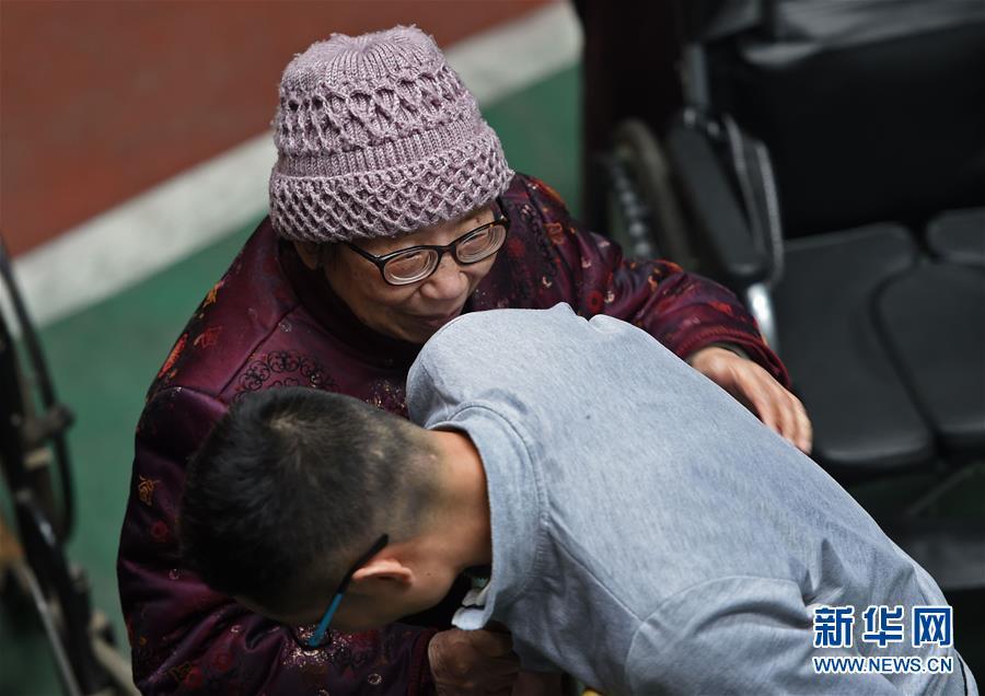 如今,89歲的奶奶視力、聽力嚴(yán)重下降,盼望著能在有生之年與7年未曾相見的孫子見上一面。為了完成老母親的這個心愿,黃小勇通過當(dāng)?shù)孛襟w為已故的兒子征集“替身”,假扮成黃舸于3月17日與奶奶會面。新華社記者 李尕 攝 圖片來源:新華網(wǎng)