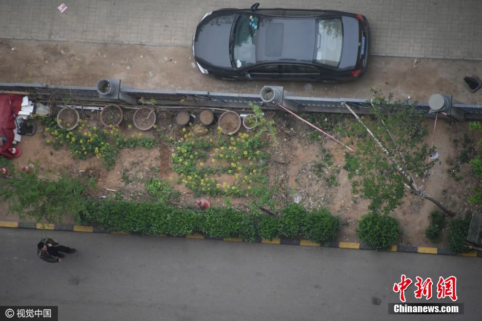 4月5日上午9時(shí)許,未來路街道巡防隊(duì)員司廣紅、盧龍等三人巡邏中發(fā)現(xiàn)一件奇葩事:有一根消防管從燕莊新區(qū)南院9號(hào)樓北面的20樓一家住戶窗口被放下,水管的另一頭直通小區(qū)柵欄里的小菜園。鄭州市燕莊村一村民住上了高樓,卻仍然放不下種地種菜。把小區(qū)垃圾清理出來,開墾出一片小菜園,又從20層的高樓往下放水澆菜。這種菜的成本遠(yuǎn)高于買菜,但他卻樂在其中。李四信 攝 圖片來源:視覺中國