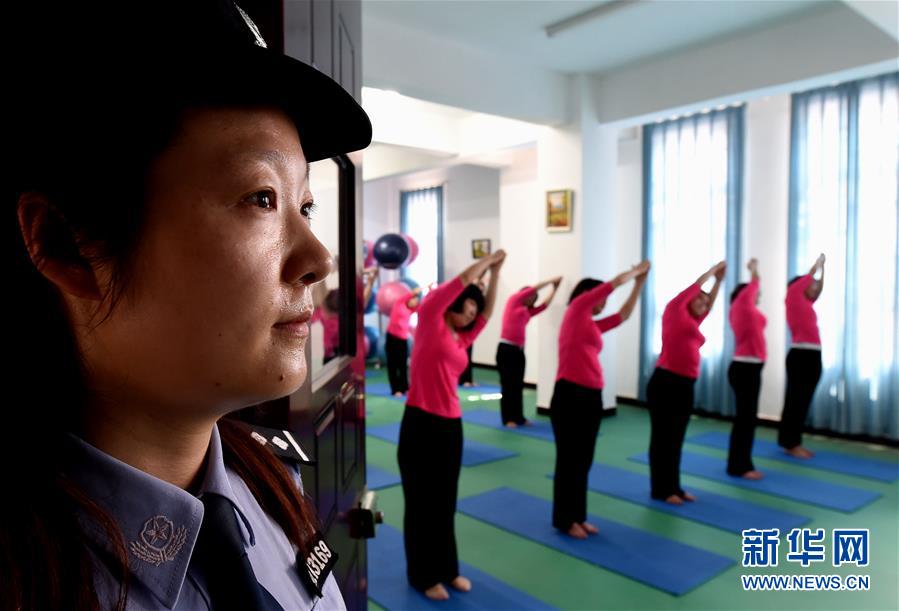 6月22日,河南省女子強制隔離戒毒所內(nèi)的戒毒人員在瑜伽室內(nèi)練習瑜伽。
