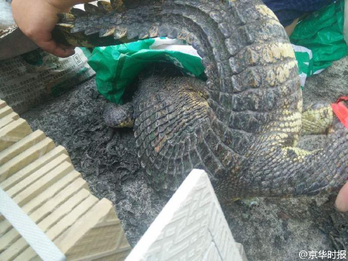 “鱷魚長約一米,身上有花斑,看著挺可怕的,還好沒有傷到人”。