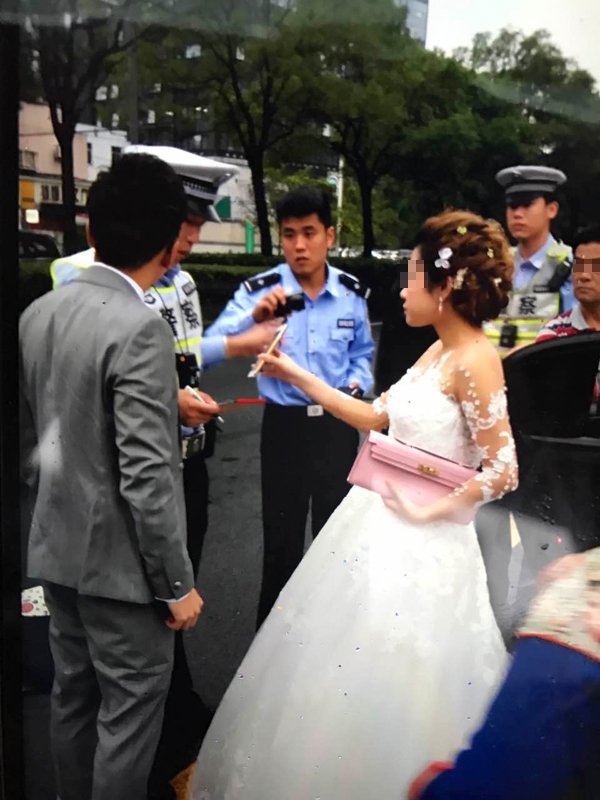 當隨車的新娘新郎得知婚車涉嫌套牌后,隨即表示支持民警工作,打車離去。