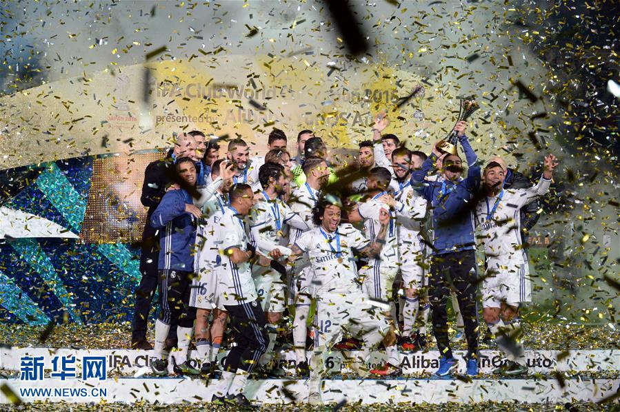 12月18日,皇家馬德里隊(duì)球員在世俱杯頒獎儀式上歡呼慶祝。新華社記者馬平攝