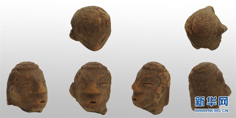 這是遼寧朝陽(yáng)市半拉山紅山文化墓地出土的陶人頭像(資料照片)。新華社發(fā)