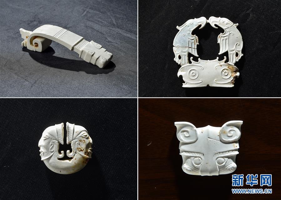 這是陜西神木縣石峁遺址皇城臺(tái)遺跡發(fā)現(xiàn)的玉器(2016年6月7日攝)。新華社發(fā)