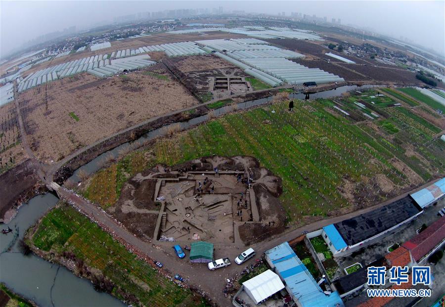 這是上海青浦青龍鎮(zhèn)遺址發(fā)掘航拍圖(2016年1月攝)。