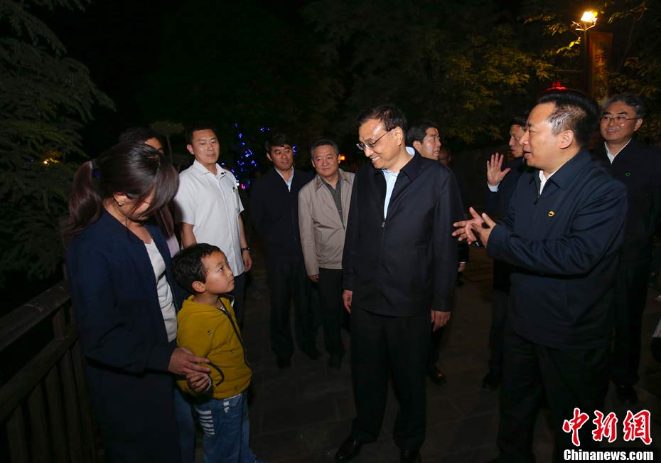 5月8日至9日,中共中央政治局常委、國務(wù)院總理李克強(qiáng)在河南省委書記謝伏瞻、省長(zhǎng)陳潤兒陪同下,在開封、新鄉(xiāng)、鄭州考察。圖為5月8日晚,李克強(qiáng)來到開封七盛角民俗文化街考察。中新社記者 劉震 攝