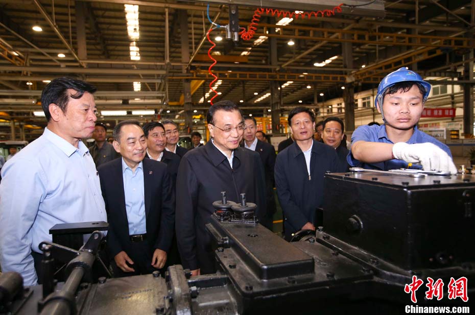 5月8日至9日,中共中央政治局常委、國務(wù)院總理李克強(qiáng)在河南省委書記謝伏瞻、省長(zhǎng)陳潤兒陪同下,在開封、新鄉(xiāng)、鄭州考察。圖為5月8日,李克強(qiáng)在開封中聯(lián)重科生產(chǎn)車間考察。中新社記者 劉震 攝