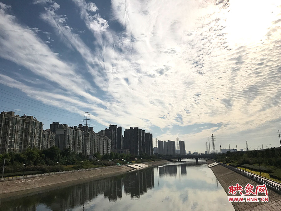 立秋大雨過后,8月8日清晨時(shí)分,鄭州上空出現(xiàn)美麗的魚鱗云,讓人沉醉,讓人興奮。抬頭45度,仰望天空,鬧市與清澈只有一顆心的距離……
