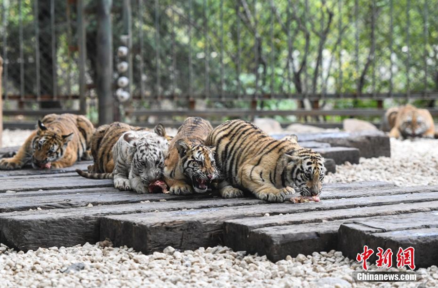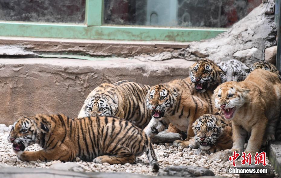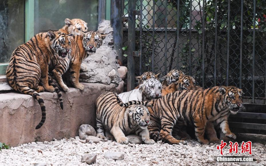 10月17日,濟(jì)南野生動物世界2017年誕生的12只小老虎集中亮相,霸氣模樣吸引許多游客駐足觀賞。據(jù)悉,濟(jì)南野生動物園2017年共繁育成活26只小老虎,其中2只是“虎中極品”金虎。 中新社記者 張勇 攝