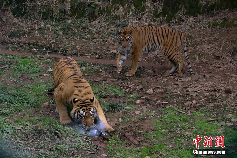 12月2日,有航拍愛好者在重慶樂和樂都野生動物世界虎區(qū)用無人機拍攝老虎(經(jīng)景區(qū)許可后在安全監(jiān)護下拍攝),不料在飛到距離地面約三米高度時,一頭老虎迅速跳躍起來,一掌將無人機擊落。王成杰 攝