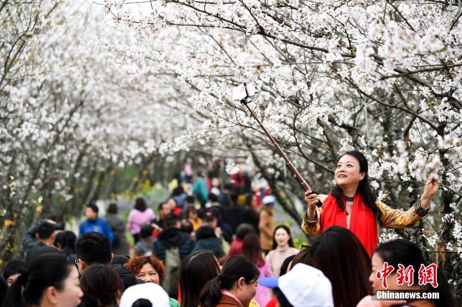 江西南昌鳳凰溝櫻花盛放,形成延綿萬(wàn)米的櫻花隧道,場(chǎng)面極為壯觀,游人絡(luò)繹不絕。 鮑贛生 攝