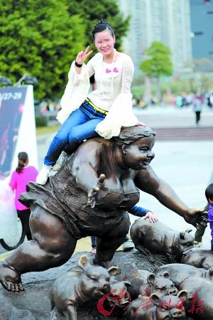 在各大景區(qū)時常可以看到游客們攀爬雕塑照相的不文明行為,以后如有上海游客在國外做出不文明的行為,或難再出境。 記者莫偉濃攝