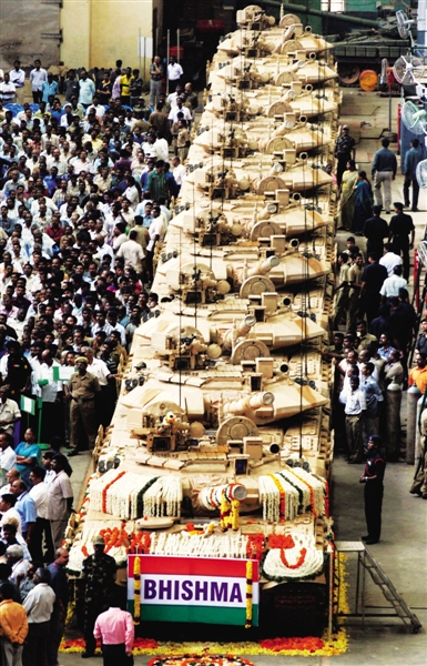 在慶典中印度軍隊展示T-90坦克。資料圖片