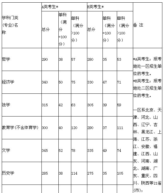 2012年全國碩士研究生招生考試考生進入復試的初試成績基本要求(學術(shù)型學位類)