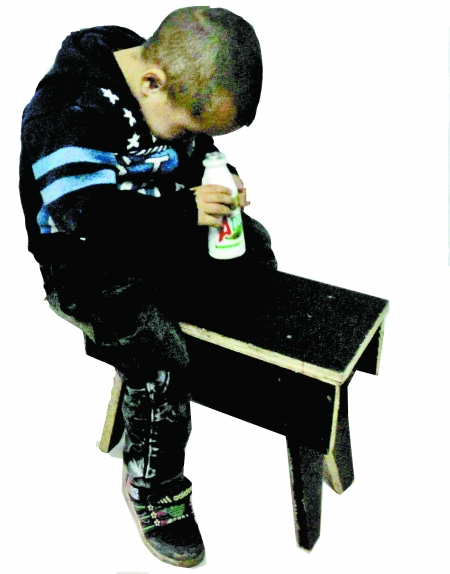 小劉浩有自閉癥的典型特征,一個瓶子他能坐在凳子上玩半天而且非常認(rèn)真。
