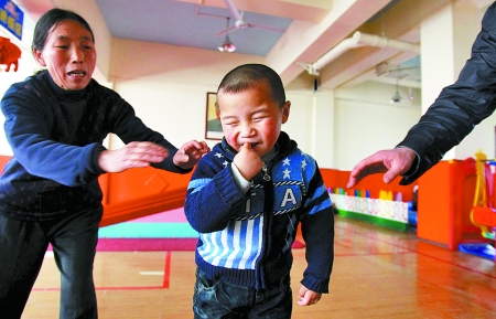 4歲的劉浩是個“小雨人”,媽媽在他生病后離家出走,奶奶沒有放棄。來鄭4個月的訓(xùn)練小有成果,對著奶奶,小家伙已能清晰地喊出“媽”。首席記者陳曉東攝