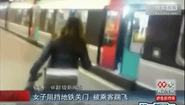 實拍女子阻擋地鐵關(guān)門 被車內(nèi)乘客一腳踹飛