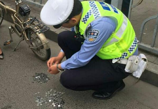 闖紅燈被罰女子拿硬幣交罰款