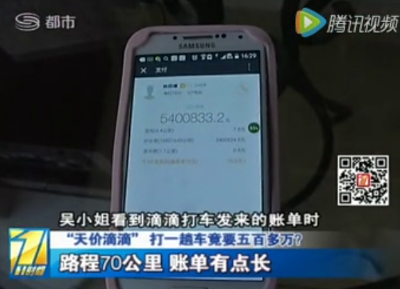 女子搭乘網(wǎng)約車收費540余萬