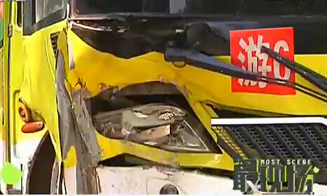 公交車(chē)誤撞路墩 十一人受傷