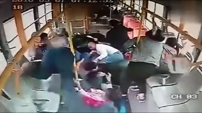 公交車未按定規(guī)停靠被追尾 車內(nèi)乘客瞬間“亂飛”