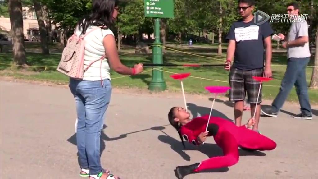美少女彎腰穿過啤酒瓶高度欄桿 成功穿行轎車底部