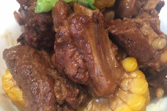 5.將挑出大料的排骨和玉米倒入鍋內,大火將湯汁收干即可。