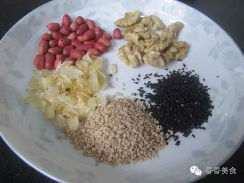 (2)花生、核桃、黑芝麻、白芝麻、百合各一小把。