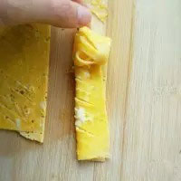3. 把切好的蛋皮左右對(duì)折。