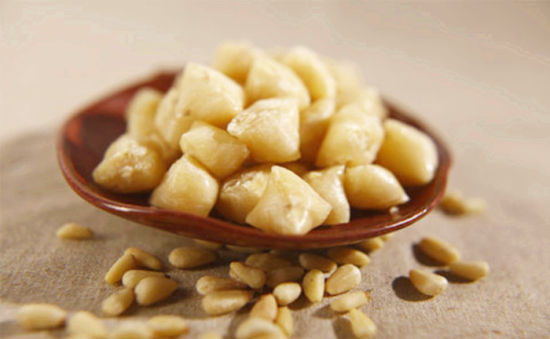 原料:白砂糖500克,松子仁200克。