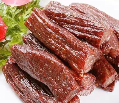 3、鹵好的牛肉瀝干水分下入七成熱油溫,炸至兩分鐘顏色金黃即可撈出食用。